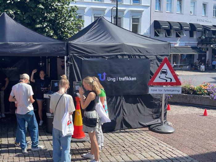 Popup-utstillingen vår er en stand med mye aktivitet og forskjellige virkemidler for å informere om rus og trafikk til unge festivaldeltakere.